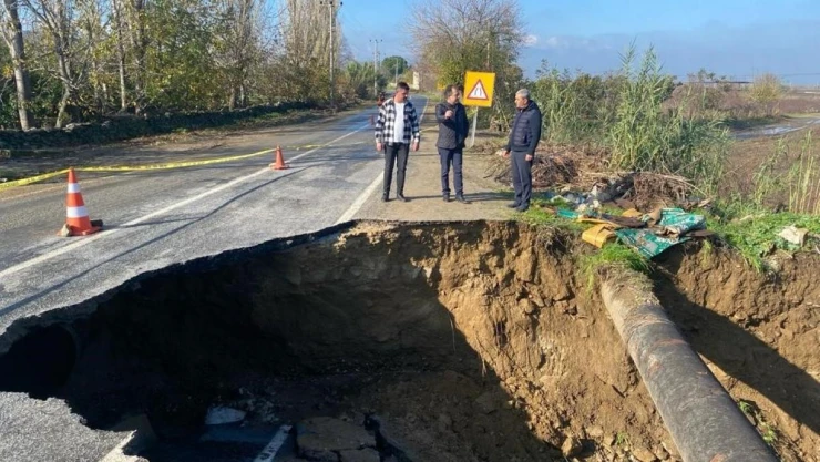 Aydın'ın Koçarlı ilçesinde dün yaşanan sağanak yağışın ardından karayolunda çökme meydana geldi. Bölgede ekipler çalışma başlattı.