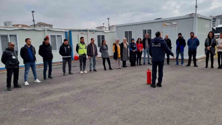 Malatya Büyükşehir Belediyesi İtfaiye Daire Başkanlığı tarafından konteyner kentlerde yaşayan vatandaşlara ve görev alan personellere yönelik yangın eğitimi veriliyor.