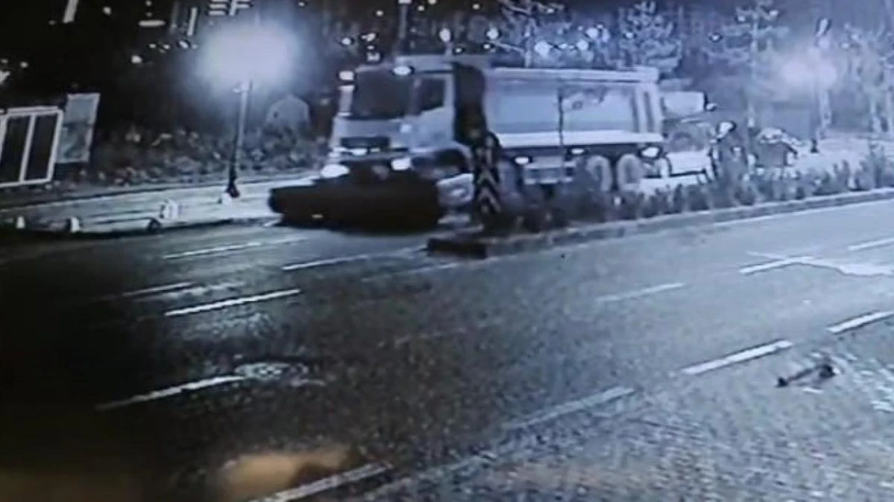 Kontrolden çıkan kamyon çarptığı 8 araçtan 1'ini metrelerce sürükledi