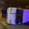 Adıyaman’da, sürücüsünün direksiyon hakimiyetini kaybettiği midibüs kontrolden çıkarak takla attı.