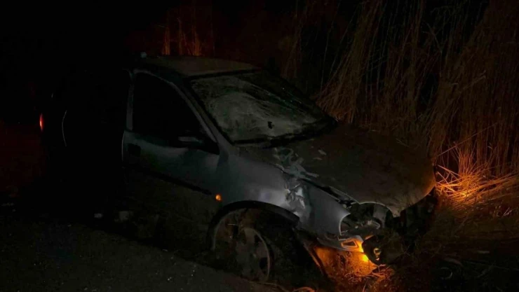 Kontrolden çıkan otomobil şarampole girip tepeciğe çarparak durabildi