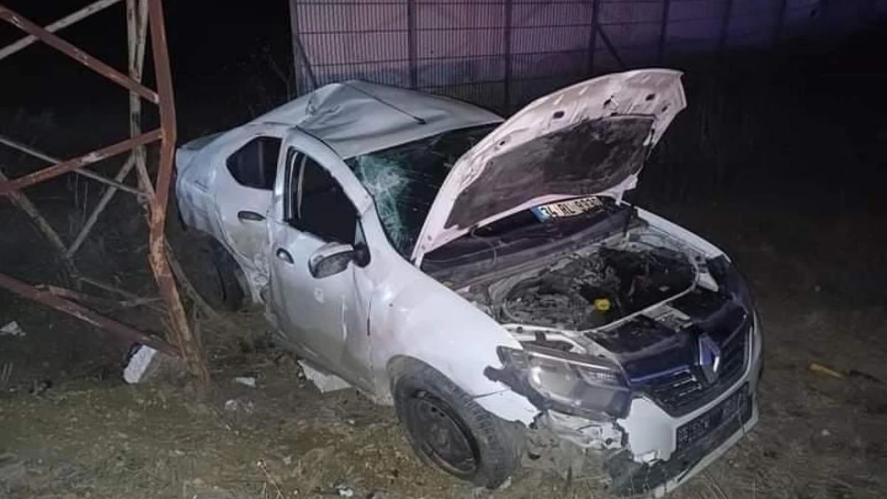 Kontrolden çıkan otomobil yüksek gerilim hattı direğine çarptı, 2 kişi yaralandı