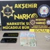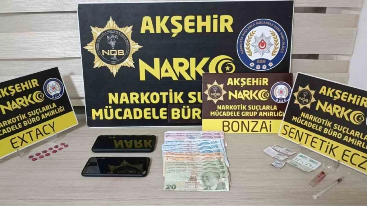 Edinilen bilgiye göre, Akşehir İlçe Emniyet Müdürlüğü Narkotik Suçlarla Mücadele Büro Amirliği ekipleri, gençleri ve geleceği zehirlemek için sokak satıcılığı yapan ve uyuşturucu madde kullanan şahıslarla ilgili yaptığı çalışmalarını sürdürüyor. Bu çerçevede narkotik ekipleri, elde edilen istihbarat sonucunda Akşehir Dr. Vahdi Yamalık Caddesi’nde daha önce haklarında uyuşturucudan işlem yapılan E.Ç. ve H.O. isimli şahısların olduğunu fark etti. Polisleri görünce kaçan 2 şüpheli yaşanan kovalamacanın ardından yakalanarak gözaltına alındı. Şüphelilerden E.Ç.’nin kaçarken yola attığı 11 adet uyuşturucu hap da ele geçirildi. Şüphelilerden H.O.’nun da yapılan üst aramasında 7 adet sentetik ecza hap, bir içimlik kağıda emdirilmiş sentetik kannabinoid bonzai ve 3 adet ecstasy hap ile bin 280 lira para ele geçirildi.