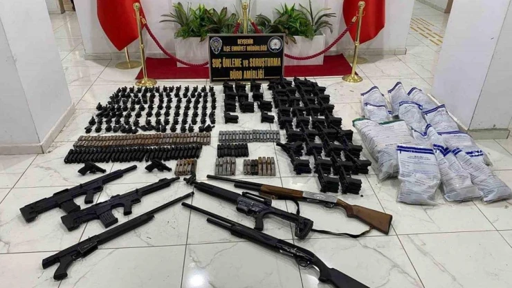 Konya'nın Beyşehir ilçesinde çeşitli suçlardan aranan ve polis tarafından yakalanan 14 şahıstan 8'i tutuklandı. Silah kaçakçılığına yönelik çalışmalarda ise, çok sayıda silah ve silah malzemeleri ele geçirildi.
