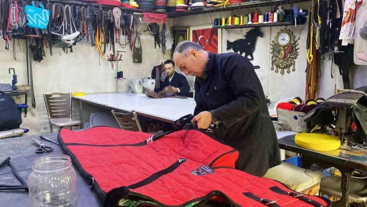 Saraçlık mesleğine 8 yaşında başladığını anlatan İhsan Digilli, "Bu meslek benim baba mesleğim. Eskiden at arabası ve fayton yapıyorduk. At arabası, fayton takımının revaçta olanları bitince biz de binicilik üzerine yöneldik. Bir semeri yaparken bir sürü işlemden geçer. İlk önce marangoz işleminden geçer. Marangoz bittikten sonra iskeleti, yapısı oluşturulur. İskeletin ilaçlanıp tutkallanma süreci ile devam ederiz. Üzerine aparatları geçiririz. Ondan sonra deri aksamların geçme süreci var. Şu anda yaptığımı yastıkların doldurulma sürecini yapıyorum" dedi.