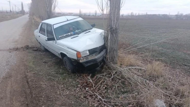 Çorum'un Alaca ilçesinde, ilçeden köye seyir halinde olan araç aniden yola çıkan köpeğe çarpmamak için manevra yapınca yol kenarındaki ağaca çarptı.