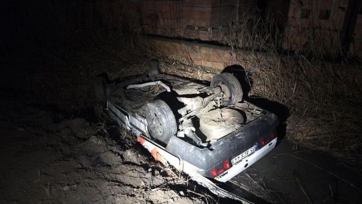 Köpeğe çarpmamak için manevra yapan Tofaş otomobil sulama kanalına uçtu: 3 yaralı