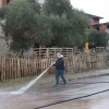 Körfez’de yoğun yağış sonrası çamurla kaplanan cadde ve sokaklar ekipler tarafından yıkanarak temizlendi.