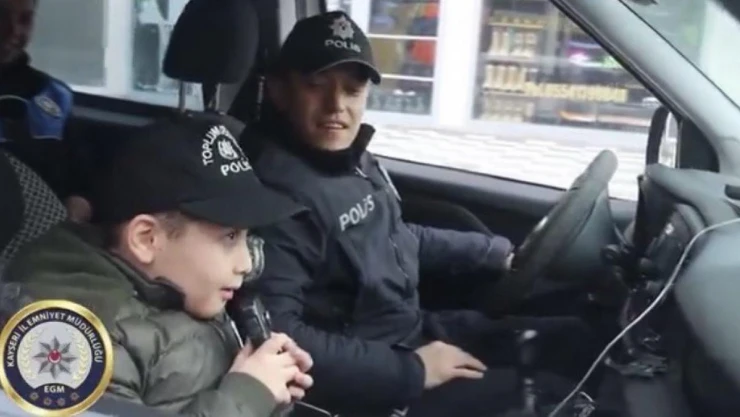 Kayseri’de polis arabasına binerek, polisleri yakından görmeyi hayal eden Ahmet Batu Özcan’ın hayali gerçek oldu. Özcan’ın ailesinin polis ekiplerini arayarak durumu bildirmesi üzerine Kayseri İl Emniyet Müdürlüğü Toplum Destekli Polislik Şube Müdürlüğü ekipleri harekete geçti. Ahmet Batu’yu evinden alan ekipler, hayali olan polis arabasına bindirerek gezdirdi. Daha sonra Danişment Şehit Oktay İzgi Polis Merkezi’ne götürülen Ahmet Batu, polislerle sohbet ederek, polis merkezini gezdi. Hayali gerçek olan küçük çocuğun mutluluğu yüzüne yansıdı.