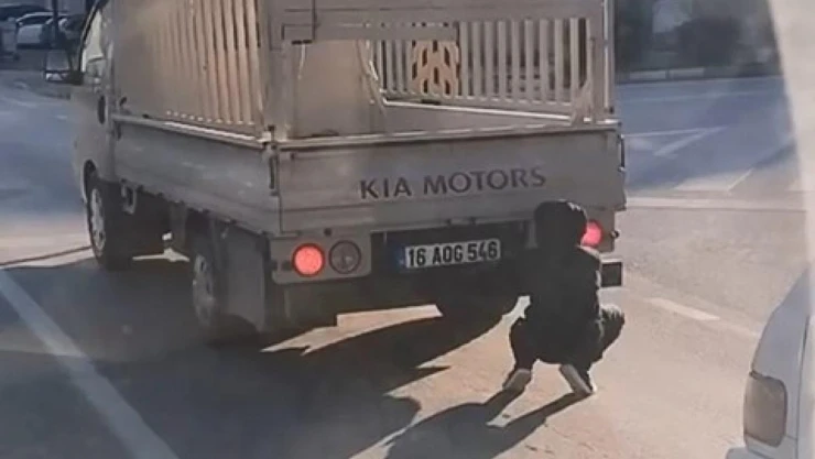 Olay, merkez Yıldırım ilçesi Barış Caddesi üzerinde meydana geldi. Edinilen bilgiye göre, kendisini kamyonet kasasına çıkarmayı oyun olarak gören yaşı küçük çocuk, ölüme meydan okudu. Bir süre canını hiçe sayarak ilerleyen çocuk kamyonetin durmasıyla birlikte ara sokaklara girerek gözden kayboldu.
