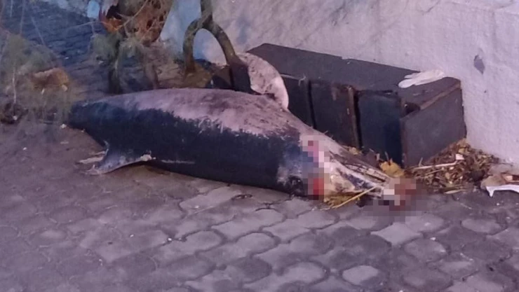 Küçükkuyu'da fırtına sonrası ölü yunus balığı karaya vurdu