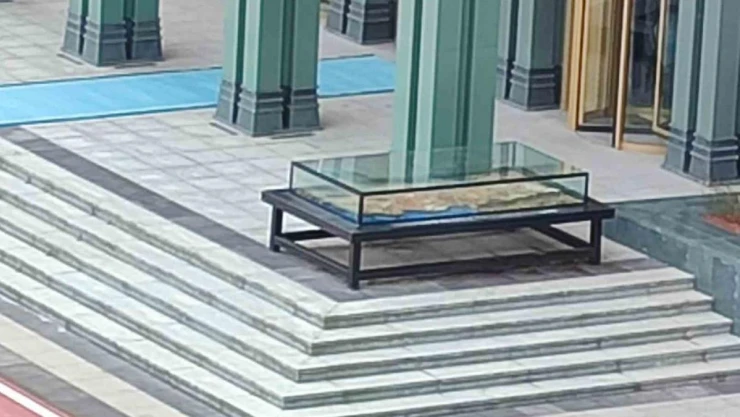 - Külliye'ye vinçle getirilen 3 ton ağırlığındaki eser, Cumhurbaşkanı Erdoğan'a hediye edildi