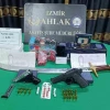 İzmir Asayiş Şube Müdürlüğü Ahlak Büro Amirliği ekipleri, Karabağlar ilçesi Selvili Mahallesi’nde bulunan ruhsatsız iş yerinde kumar oynandığı ihbarı üzerine harekete geçti. Ekipler tarafından adrese yapılan operasyon kapsamında adreste arama yapıldı. Gerçekleştirilen aramada, 2 adet ruhsatsız tabanca ve tabancalara ait toplam 24 adet farklı ölçülerde fişek, 80 santim uzunluğuna sahip kılıç, 10 adet yeşil reçeteye tabi sentetik hap, 2 farklı şahıs adına düzenlenmiş 920 bin TL bedelli borç senedi, 580 adet para yerine geçen çip, 40 kutu iskambil oyun kağıdı, 8 adet özel yapım barbut zarı ele geçirildi.