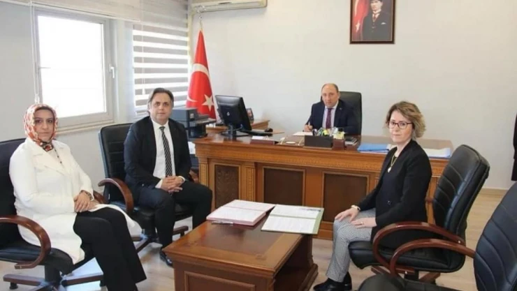 Düzce Vali Yardımcısı Ömer Sağlam’ın makamında Belediye Başkan Yardımcısı Burçin Sarıcan, 112 Acil Çağrı Merkezi Müdürü Gönül Günaydın Çabukoğlu ve BELMEK koordinatörü İlknur Bahar işbirliği protokolü için bir araya geldi.