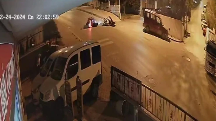 Kaza, çevredeki iş yerlerinin güvenlik kameraları kayıtlarına yansırken, görüntülerde iki motosikletin kafa kafaya çarpışma anı ve sonrasında motosikletlerde bulunan şahısların savrularak düşmeleri yer alıyor.