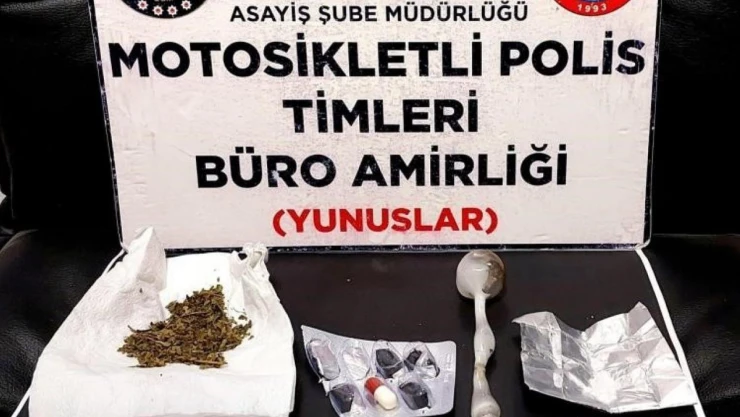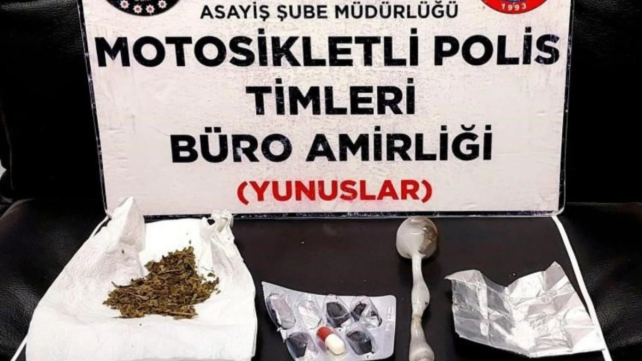 Asayiş Şube Müdürlüğüne bağlı Motosikletli Polis Timleri, İstihbarat ve Narkotik Şube Müdürlüğü tarafından Hilal Kent Mahallesinde yapılan koordineli çalışmalarda, E.A. (26) isimli şahsın sevk ve idaresindeki, A.A. (23), T.A. (20) ve H.A. (31) isimli şahısların yolcu olarak bulunduğu araçta ve şahısların yapılan üst aramasında, 0,58 gram metamfetamin, 3,00 gram bonzai, 1 adet sentetik ecza hap ve 1 adet payp ele geçirildi.
