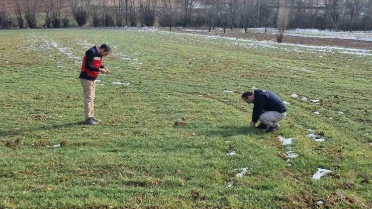 İl Tarım ve Orman Müdürlüğü Bitkisel Üretim ve Bitki Sağlığı Şubesi teknik personeli tarafından Tarım Arazilerinin Kullanımının Etkinleştirilmesi (TAKE) projesi çerçevesinde dağıtılan buğday tohumlarının arazide ekiliş ve çimlenme kontrollerine devam ediliyor.