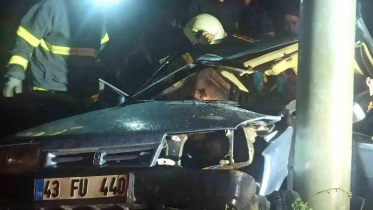 Kütahya'da otomobil direğe çarptı: 3 yaralı
