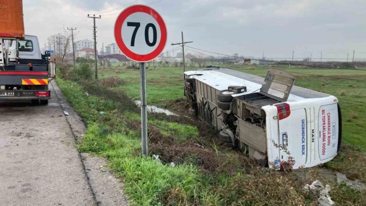 Çanakkale'nin Lapseki ilçesinde İÇDAŞ işçilerini taşıyan otobüs şarampole yuvarlandı. Kazada 5 işçi yaralandı.