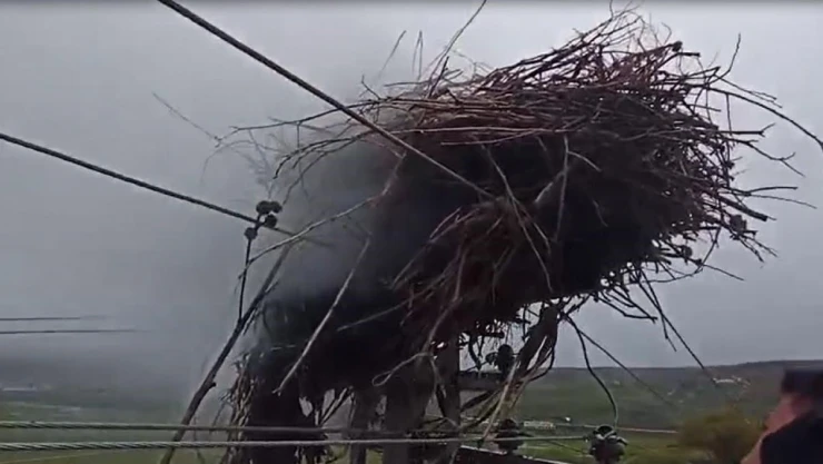 Ardahan'da elektrik direğinin üstündeki leylek yuvası, bilinmeyen bir nedenle çıkan kıvılcımlarla tutuştu. İtfaiye ekipleri alevleri söndürerek leylek yuvası ve yumurtalarını kurtardı.