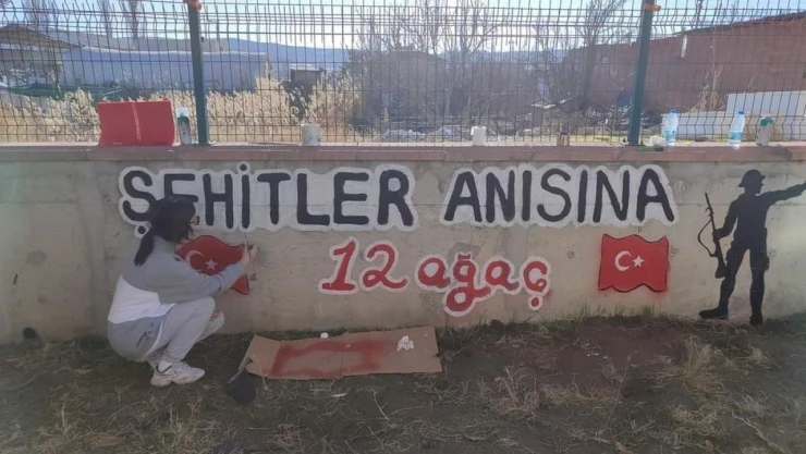 Çorum’un Sungurlu İlçesi’nde, fen lisesi öğrencileri 12 şehit için 12 fidan diktiler.
