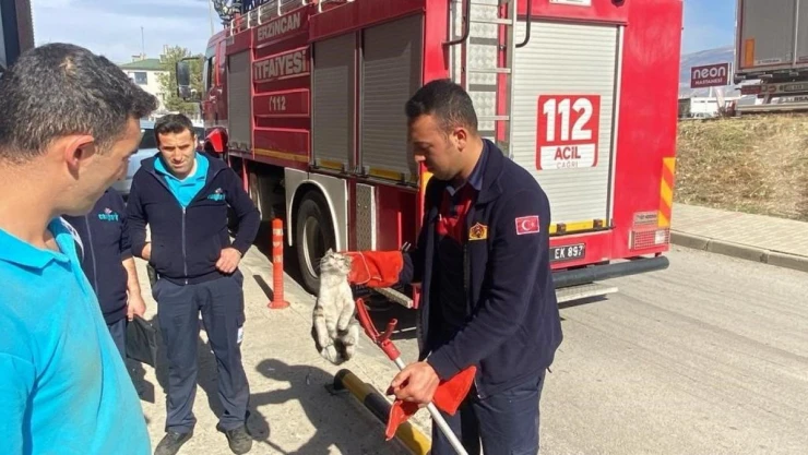 Erzincan'da bir alışveriş merkezinin havalandırma boşluğunda mahsur kalan kedi itfaiye ekiplerinin çalışması sonucu kurtarılarak doğaya salındı.