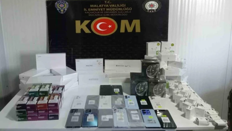 Malatya Emniyet Müdürlüğü Kaçakçılık ve Organize Suçlarla Mücadele Şube Müdürlüğü (KOM) ekipleri, tespit edilen 1 şahsın ikamet ve iş yerlerinde arama yaptı. Yapılan aramalarda gümrük kaçağı 16 adet akıllı cep telefonu, 19 adet kablosuz kulaklık, 25 adet akıllı kol saati, 27 Adet elektronik sigara, 14 adet USB şarj kablosu, 14 adet adaptör ele geçirildi.
