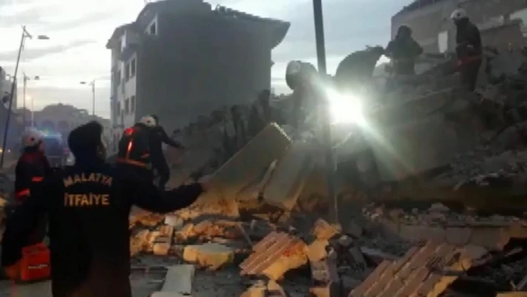 Malatya'da ağır hasarlı bir bina çöktü. Enkaz altında kaldığı öğrenilen bir kişiyi arama çalışması başlatıldı.