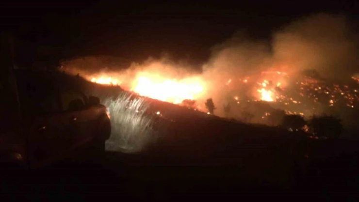 Geniş bir alanda etkili olan ve yerleşim yerlerine yaklaşan yangında bazı evler tahliye edildi.