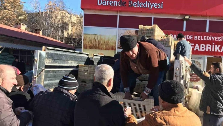 Deprem bölgesi Hatay’ın Erzin ilçesinde yaşayan Darendeli hayırsever Mehmet Ulu’nun desteği ile ilçede yaşayan depremzedelere bir kamyon mandalina dağıtıldı. Darende Belediyesi fırını önünde kısa sürede dağıtımı yapılan mandalinaları alan Darendeli depremzedeler, Ulu’ya yardımları için teşekkür ederken, yardımları kısa sürede tükendi.