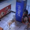 Diyarbakır'ın Kayapınar ilçesinde sokak kedisi, mama beklediği bakkalın önünde iki sokak köpeği tarafından sıkıştırılması ve oradan kurtulmaya çalışması güvenlik kamerasına yansıdı.