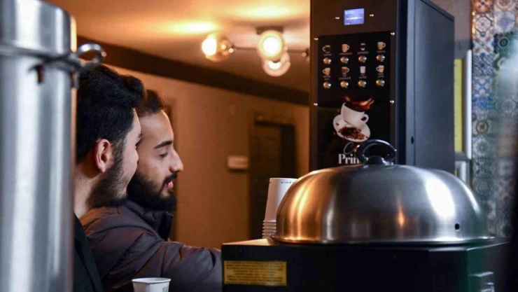 Mamak Belediyesi uyanık kütüphanelerine ders çalışmaya sıcak bir mola vermek isteyen öğrenciler, soluğu kahve makinesinin önünde alıyor. Kahve içerek enerji depolayan gençler böylece ders çalışmaya daha zinde devam ediyor.