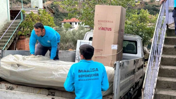 Manisa Büyükşehir Belediyesi, Köprübaşı ilçesinde evlerinde çıkan yangın nedeniyle eşyaları kullanılamaz hale gelen Bulut ailesinin yardımına koştu. Sosyal Hizmetler Dairesi Başkanlığı yetkilileri, televizyon, buzdolabı, çamaşır makinesi ve çekyattan oluşan ev eşyalarının teslimini aileye gerçekleştirdi.