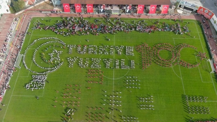 Öte yandan Soma Atatürk Stadyumunda ki programda çok sayıda öğrenci ile Stadyuma Türkiye Yüzyılı Kareografisi yapıldı.