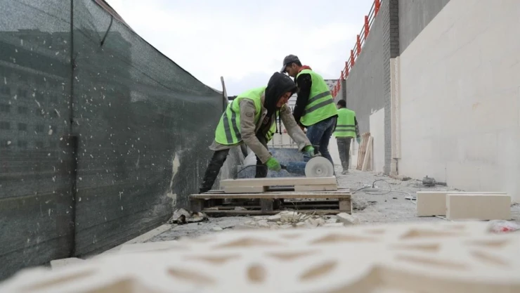 Mardin'de şehrin merkezine ayrı bir hava katacak olan Polisevi duvarı cephe iyileştirme çalışmaları devam ediyor.