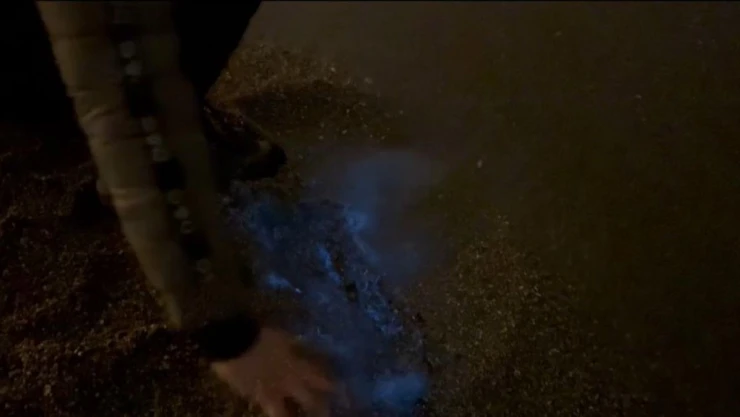 Bursa’nın Mudanya ilçesinde, tek hücreli organizmaların aşırı derecede üremelerinden sonra toplu halde su yüzüne çıkmalarıyla yaşanan ’alg patlaması’ deniz suyunu gece yarısı mavi ışıklı hale getirdi. Denizdeki ışığı görenler büyük şaşkınlık yaşadılar.