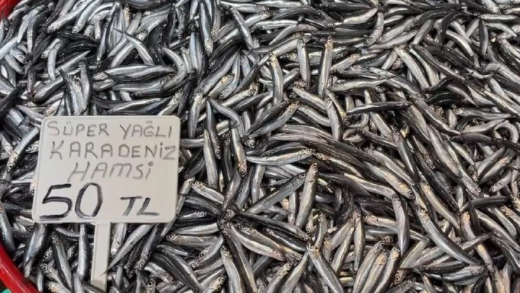 Balıkesir Büyükşehir Belediyesi Bandırma Su Ürünleri Hali’nde Karadeniz hamsisinin kilosu 50 liraya kadar düştü.