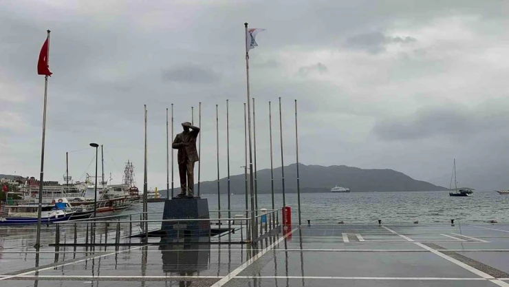 Yağışlarla beraber dağlardan akan balçıklı sularla dolan dereler aktıkları denizin rengini kahverengiye çevirdi. Hava sıcaklığının 17 derece olduğu Marmaris’te etkisini gösteren yağışların akşam saatlerine kadar devam edeceği tahmin ediliyor.