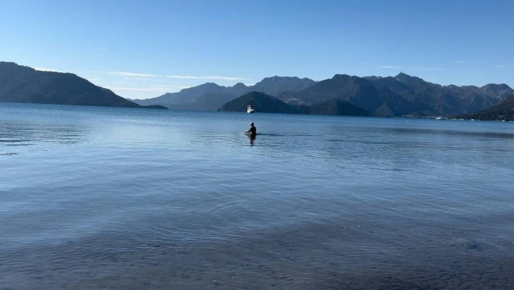 Kış mevsiminin son ayı olan Şubat ayında Marmaris’te denize girilmeye başlandı. Hava sıcaklığının 18 derece, deniz suyu sıcaklığının 17 derece olduğu turistik ilçede sabah saatlerinde bir vatandaş denize girip yüzdü. Güzel havayı fırsat bilen Marmaris yaşayanları da sahil kenarlarında yürüyüş yaparak vakit geçirdi. Marmaris’te kış mevsiminde bahar havası yaşanırken bazı vatandaşlar halk plajında denize girerek güzel havanın keyfini çıkardılar. Hafta sonu da özellikle sahil kenarlarında vakit geçiren Marmaris yaşayanları hafta içinde de yine aynı noktalarda bir araya geliyor.