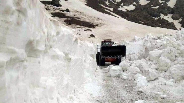 Mayıs ayında iş makinesinin boyunu geçen karlı yollarda çalışma