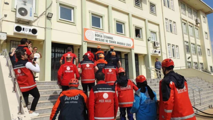 Okulda gerçekleştirilen tatbikat, Manisa AFAD 15 kişi, Manisa Büyükşehir Belediyesi İtfaiyesi 2 itfaiye aracı ve 15 kişi, UMKE 1 araç ve 10 kişi, MEB AKUB 25 kişi ve jandarmadan 5 kişilik JAK ekibinin katılımıyla gerçekleştirildi.
