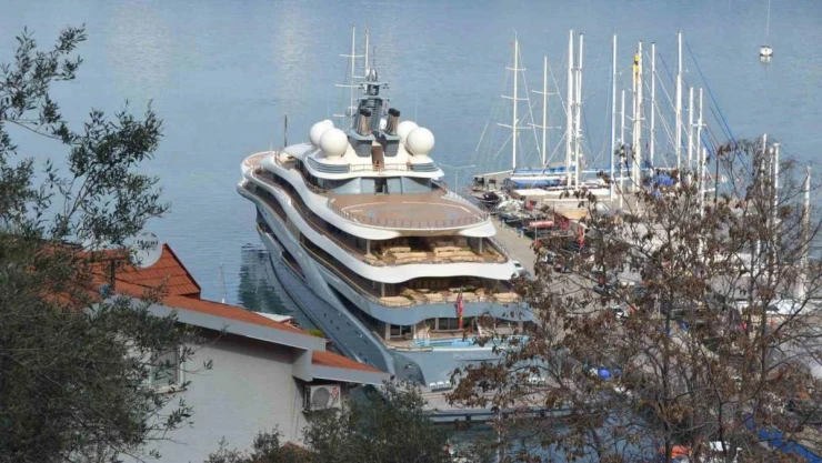 Dünyanın en zengin iş adamlarından Amazon'un sahibi Jeff Bezos'un süper yatı 'Flying Fox', Fethiye'ye demir attı.