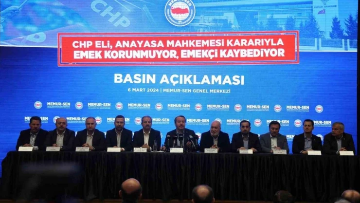 - Memur-Sen Genel Başkanı Yalçın: 'Sendikal örgütlenmeyi ödüllendiren düzenleme, CHP'nin başvurusu ve AYM'nin kararıyla ortadan kaldırıldı'