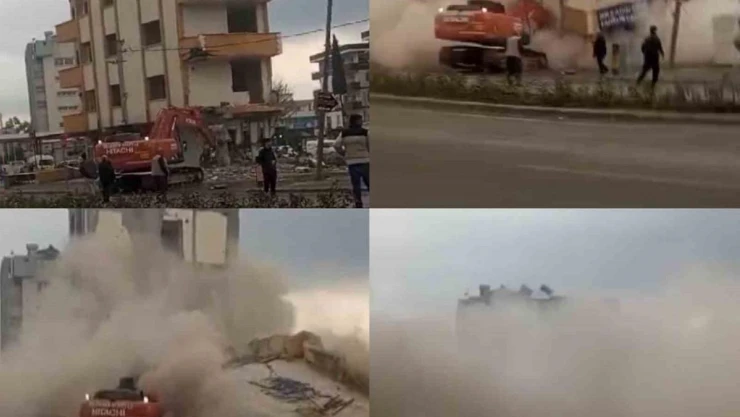 Binanın çökme anı ve yaşanan panik cep telefonu kamerasına yansıdı. Görüntülerde kepçenin çalıştığı anda binanın üzerine devrilme anları ile çevreyi saran toz bulutu yer aldı. O anları görüntüleyen bir vatandaşın ’kepçe gitti, evet kepçe gitti’ diye tepki vermesi ise dikkat çekti.