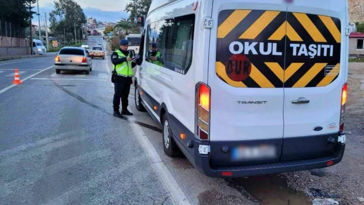 Mersin'de, İl Jandarma Komutanlığı ekipleri okul servis araçlarına yönelik denetim gerçekleştirdi.