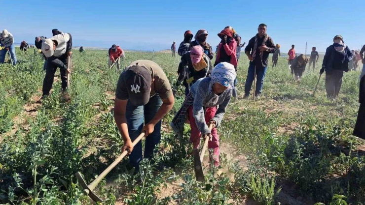 Sabahın erken saatlerinde çapa işine başlayan işçiler, akşam geç saatlere kadar çalışıyor. Genç yaşlı evin bütçesine katkı sağlamak için sıcak altında çalışan işçiler için tarlalar ekmek kapısı oldu.