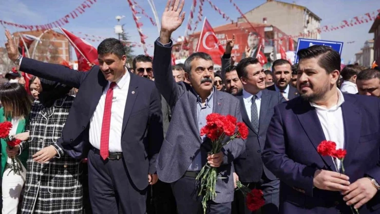 Milli Eğitim Bakanı Yusuf Tekin, Ankara’nın Kahramankazan ve Kızılcahamam ilçesinde gerçekleştirilen "sevgi yürüyüşüne" katıldı. İlk olarak Kahramankazan ilçesine gelen Bakan Tekin, Fevzi Çakmak Caddesi’nden başlayan yürüyüşe katıldı. Tekin’e Cumhur İttifakı Kahramankazan Belediye Başkan Adayı Serhat Oğuz, AK Parti Ankara Milletvekili Osman Gökçek, AK Parti ve MHP İlçe Teşkilat üyeleri eşlik etti.