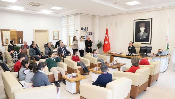 Sağlık sorunları nedeniyle evde eğitim hizmeti alan Cumhuriyet İlkokulu öğrencisi Nursima Topsakal, özel davet üzerine diğer arkadaşlarıyla birlikte törene katıldı. Nursima ve diğer öğrencileri tebrik eden Güney, öğrencilerle pasta kestikten sonra öğrencilere ödüllerini ve başarı belgelerini takdim etti. Ayrıca proje sürecinde desteklerini esirgemeyen öğretmenlerine ve ailelerine de teşekkür etti. Güney, dereceye giren ilk on eserin yılsonu sergisinde diğer aylarda dereceye giren eserlerle birlikte sergileneceğini paylaştı.
