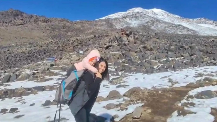 Yaz-kış hem yerli hem de yabancı dağcı grupları ağırlayan Ağrı Dağı, bu defa anne ve minik kızını zirvesinde ağırladı. Kocaeli’den Ağrı’ya kızıyla zirve yapmak için gelen 31 yaşındaki Elif İlçi, 2 buçuk yaşında olan kızı Nisa’yı sırtına alarak tırmanışa geçti. İlk karı Ağrı Dağı zirvesinde gören ve annesiyle beraber kar topu oynayan minik Nisa, küçük yaşında zirveye çıkmanın heyecanını yaşadı.