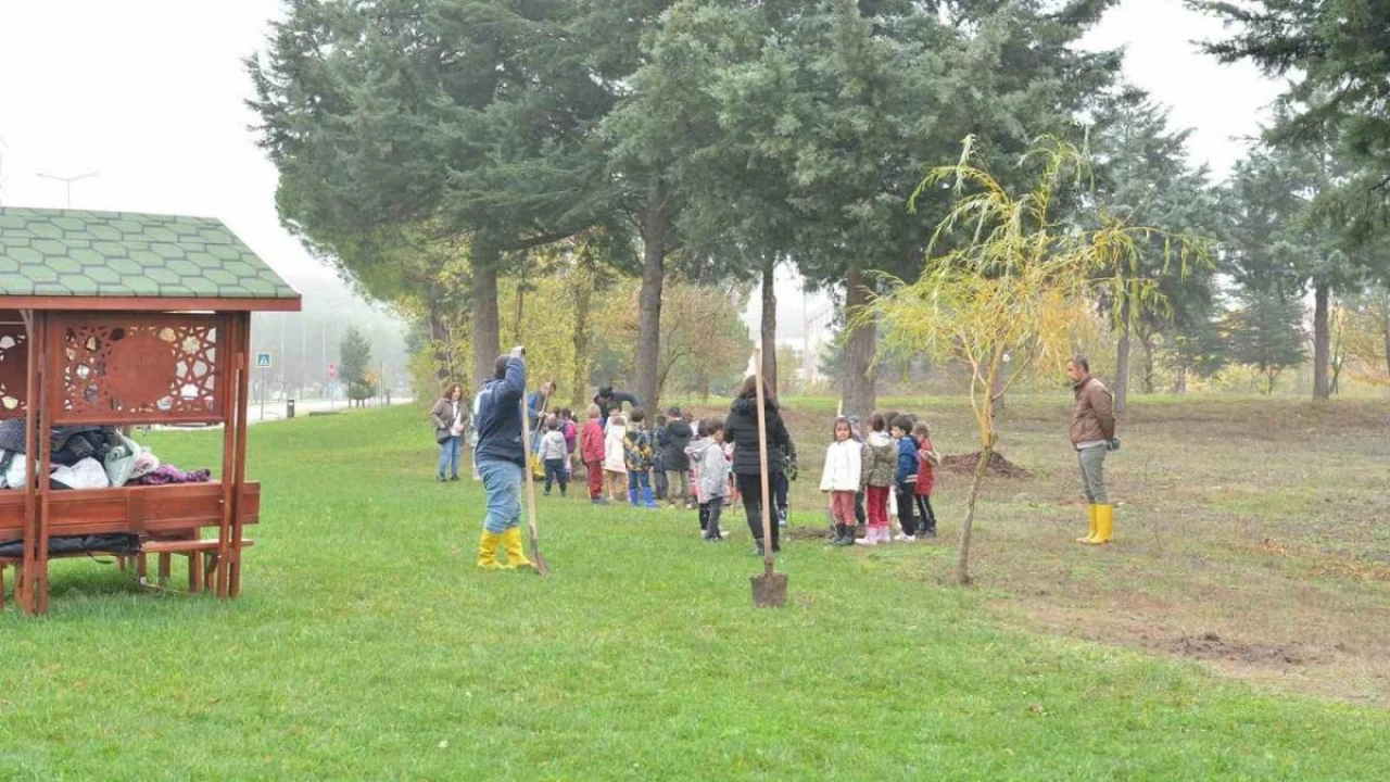 Karesi Şehit Mesut Yağan Anaokulu öğrencileri “Cumhuriyetimizin 100. Yılında 100 Meyve Fidanı” etkinliği ile Balıkesir Üniversitesinin (BAÜN) Çağış Yerleşkesi’nde fidan dikimi gerçekleştirdi.